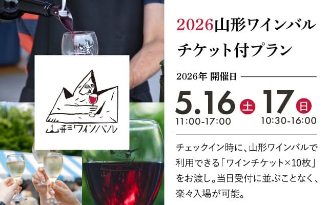 【5/16・17限定】東北最大級のワイン祭りを満喫! 「山形ワインバル2026」チケット付き&無料送迎プラン